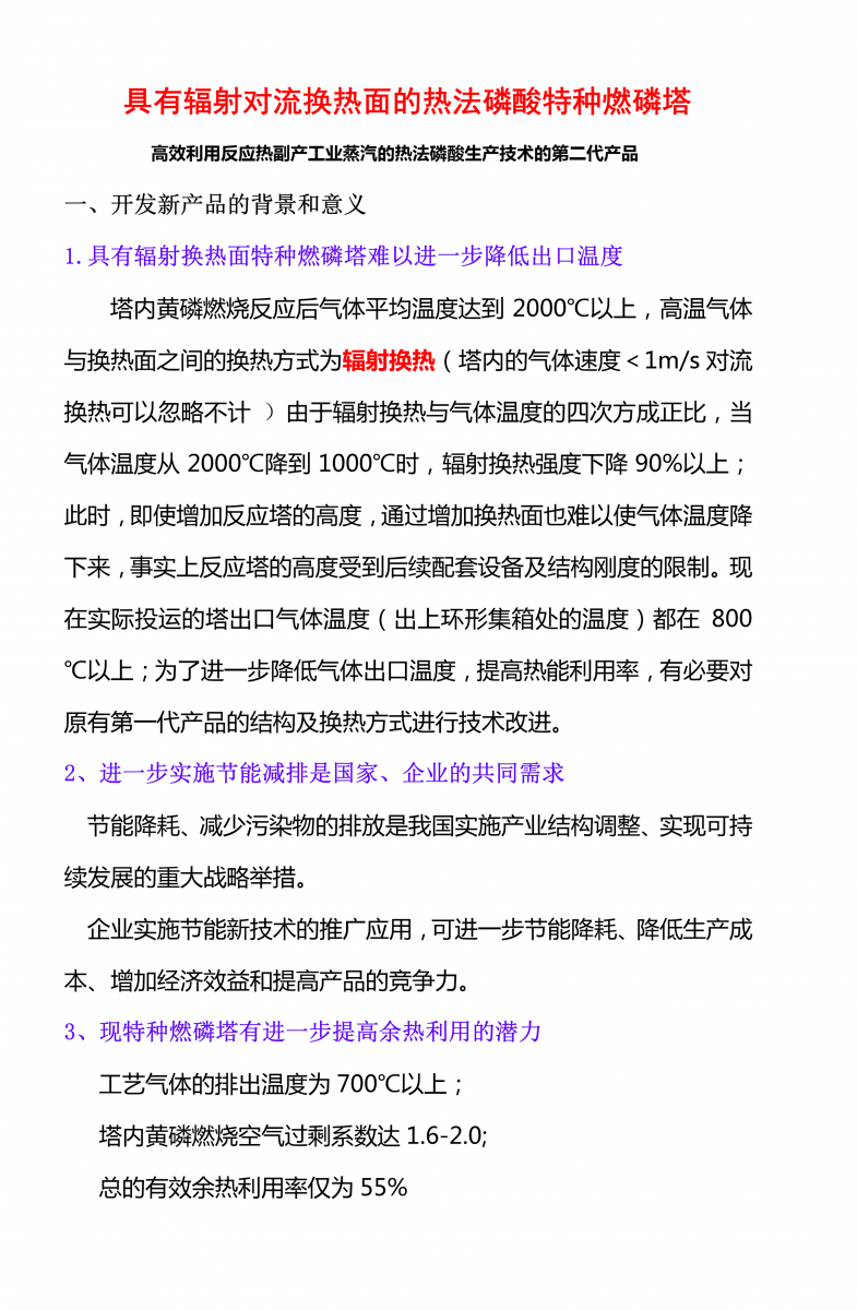 我公司專利產品--熱法磷酸反應塔第二代已研發(fā)成功
